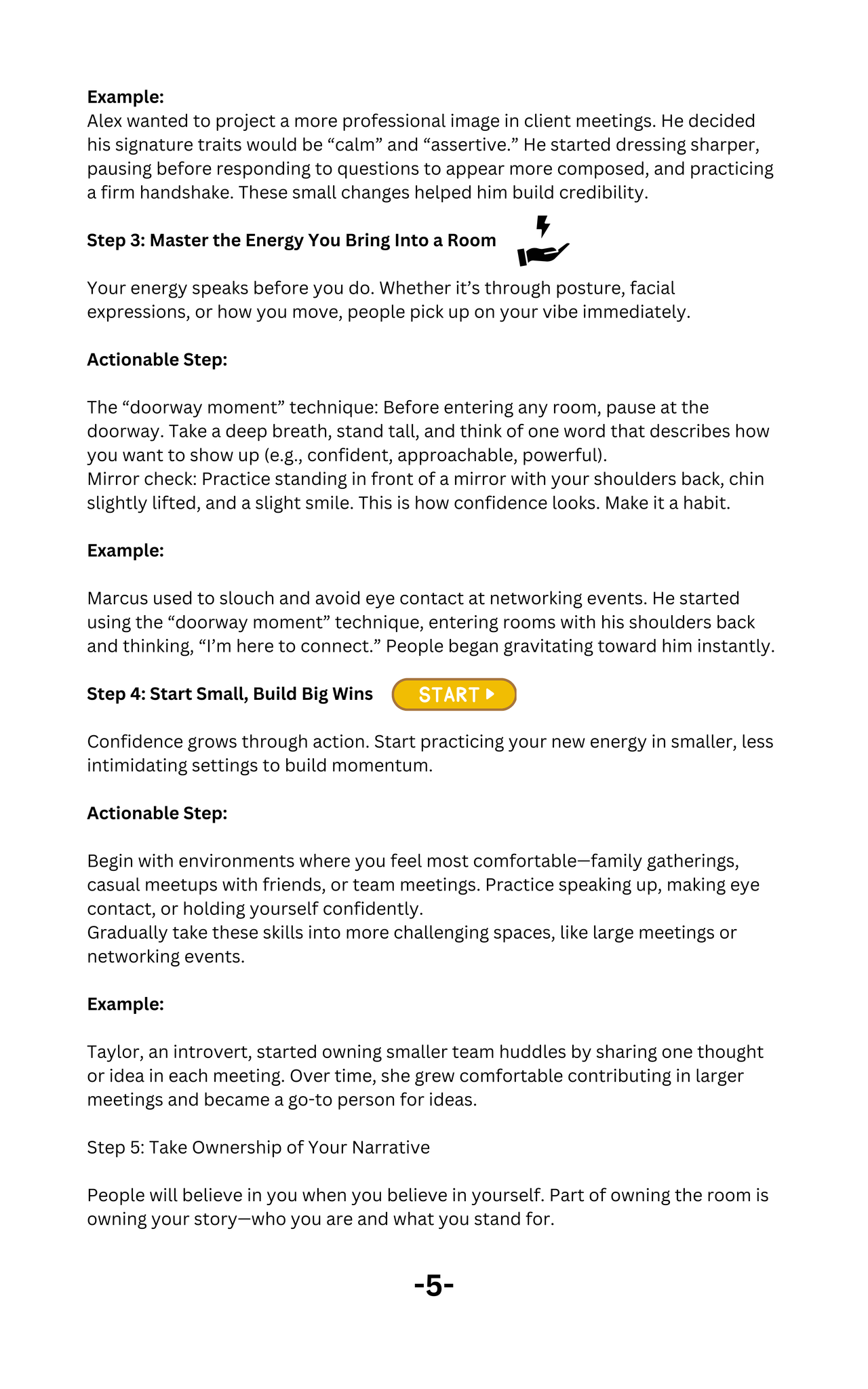 • Command Attention Without Speaking: Harness the power of body language, eye contact, and subtle non-verbal cues to exude authority.