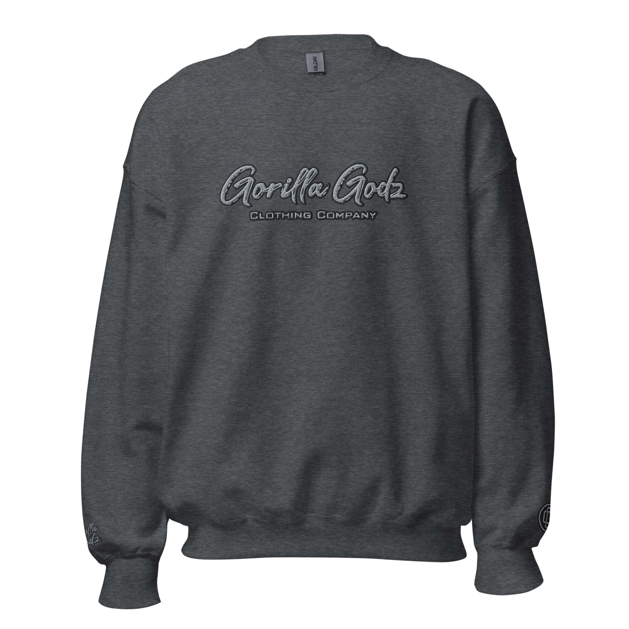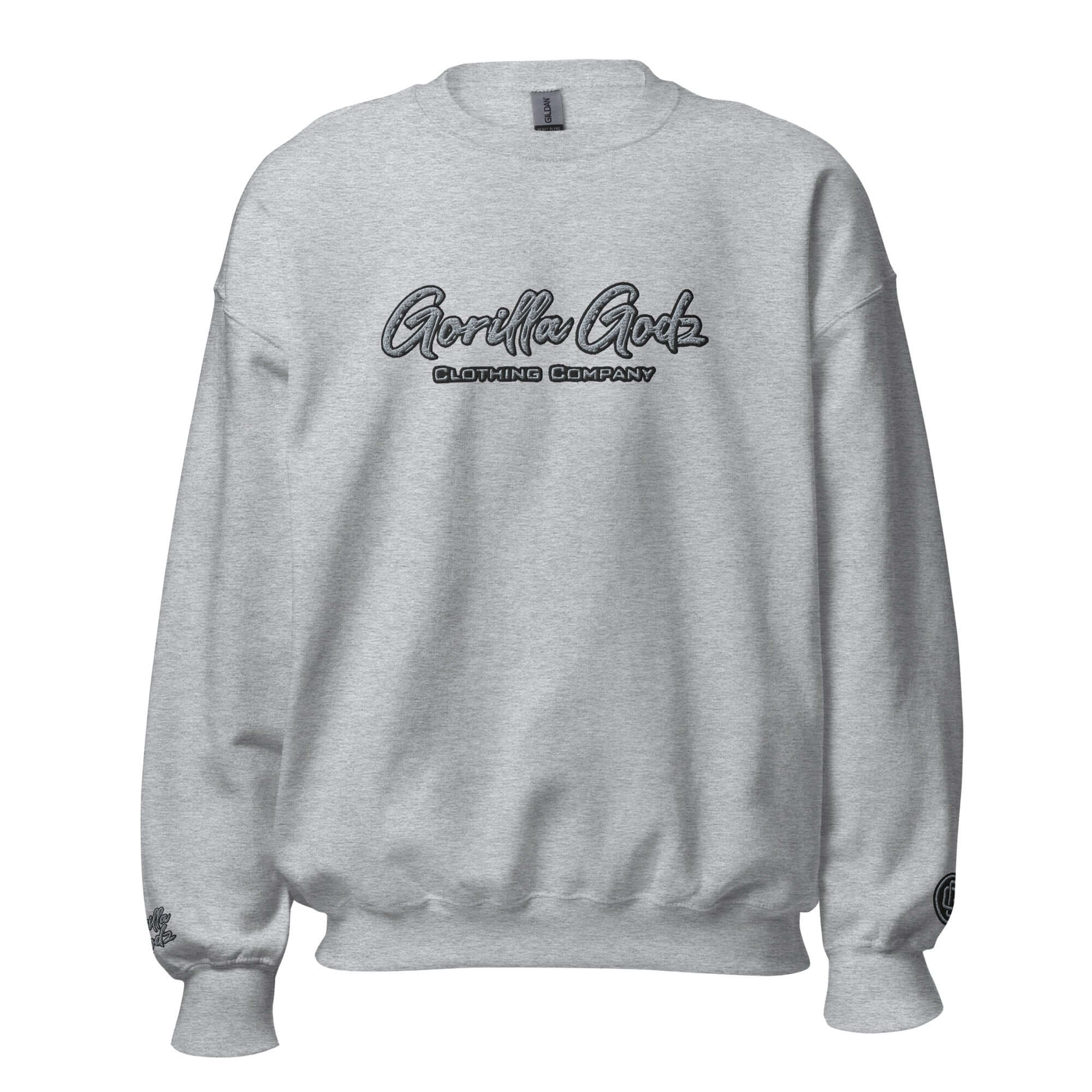 Introducing our newest addition to the Gorilla Godz merchandise line - the "Black and Grey" embroidered unisex sweatshirt! Made with high-quality materials, this sweatshirt features our iconic Gorilla Godz logo in a sleek black and grey design. Whether you're hitting the streets or lounging at home, this sweatshirt is perfect for any occasion. Get yours today at gorillagodz.com and join the Gorilla Godz family.