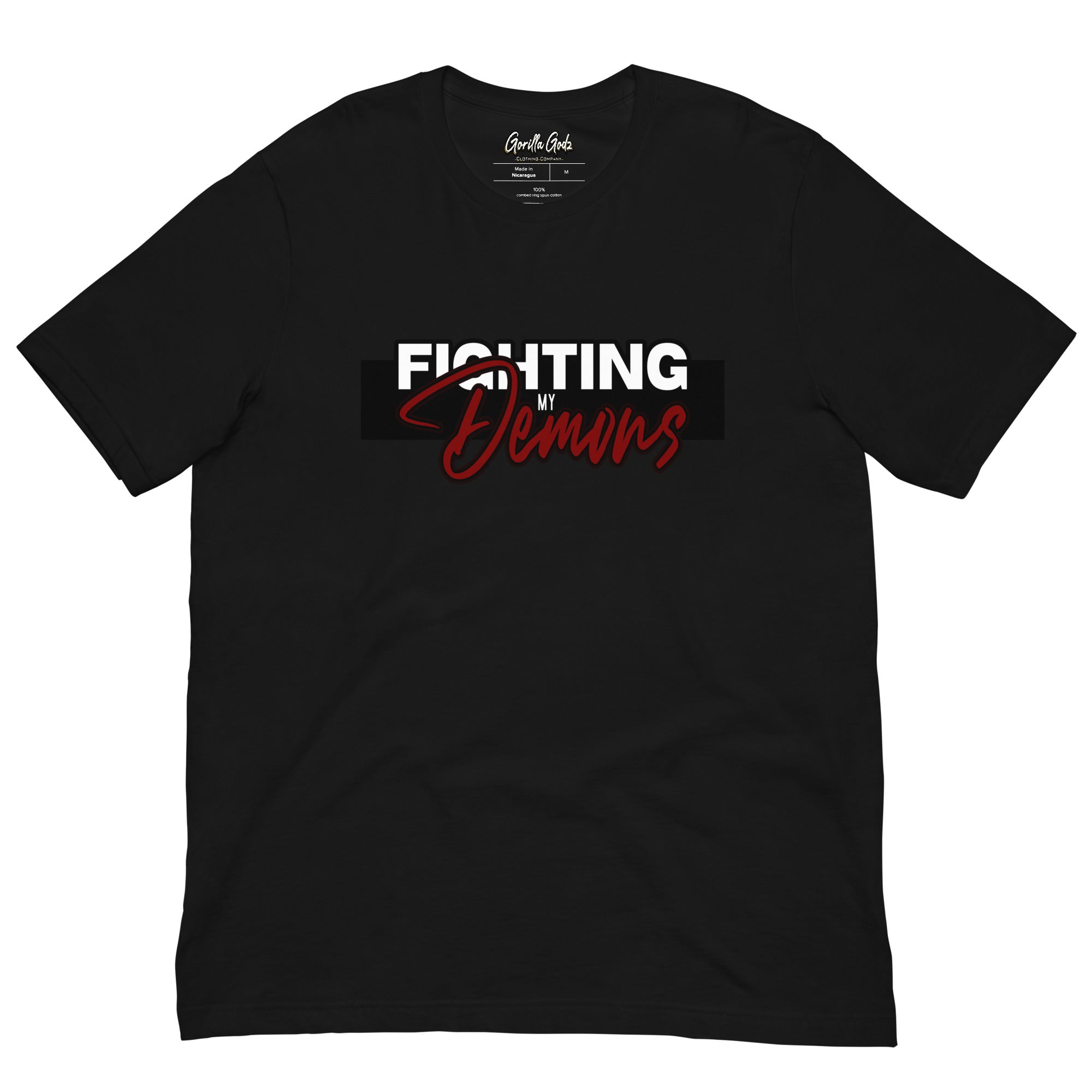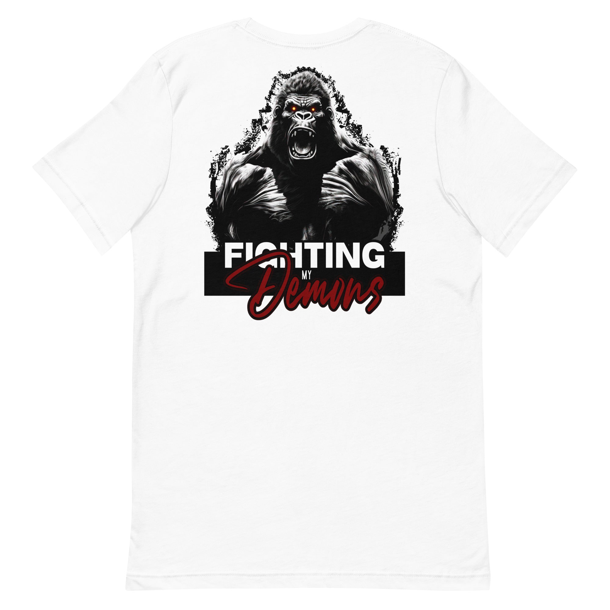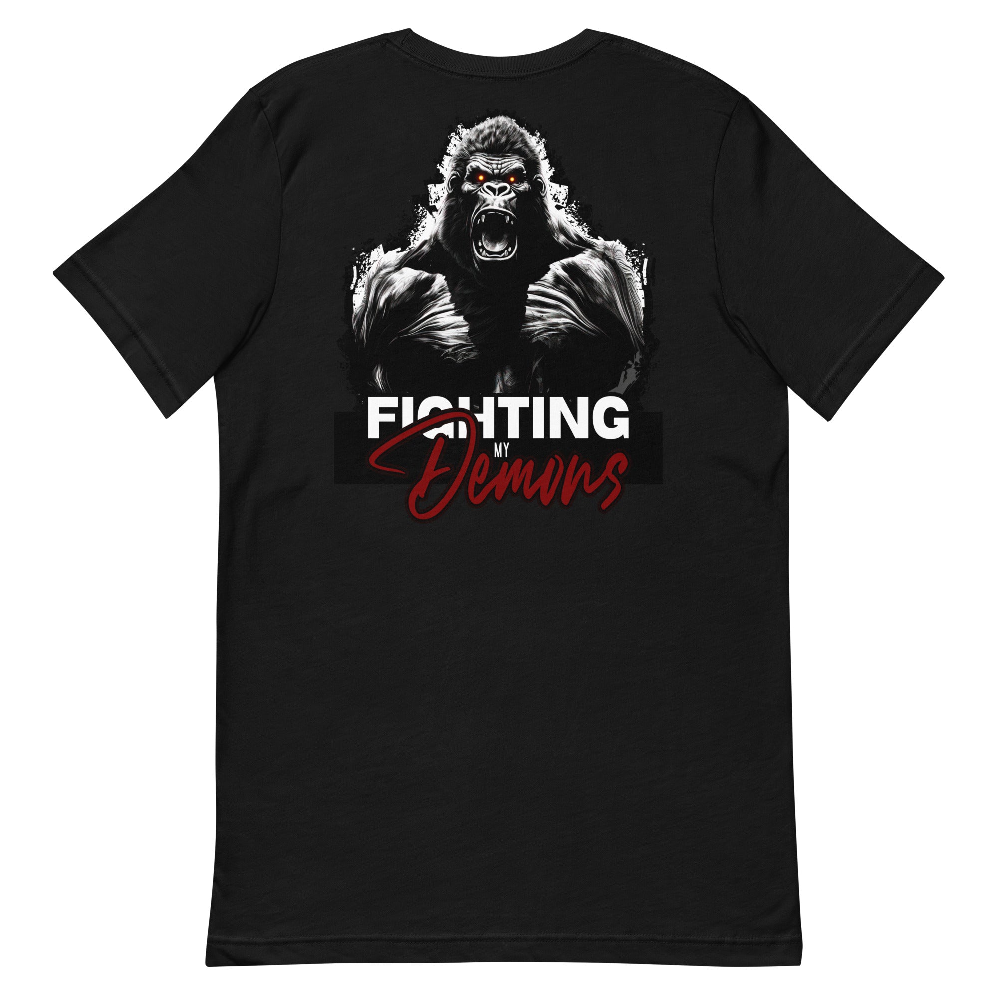 Introducing our Gorilla Godz T-shirt, a symbol of resilience and inner strength. This shirt is a declaration of victory over the battles within. Crafted with utmost care, it combines comfort with style. Its bold design reflects the courage it takes to face and conquer one's demons. Wear it proudly, showing the world that you're a fighter.