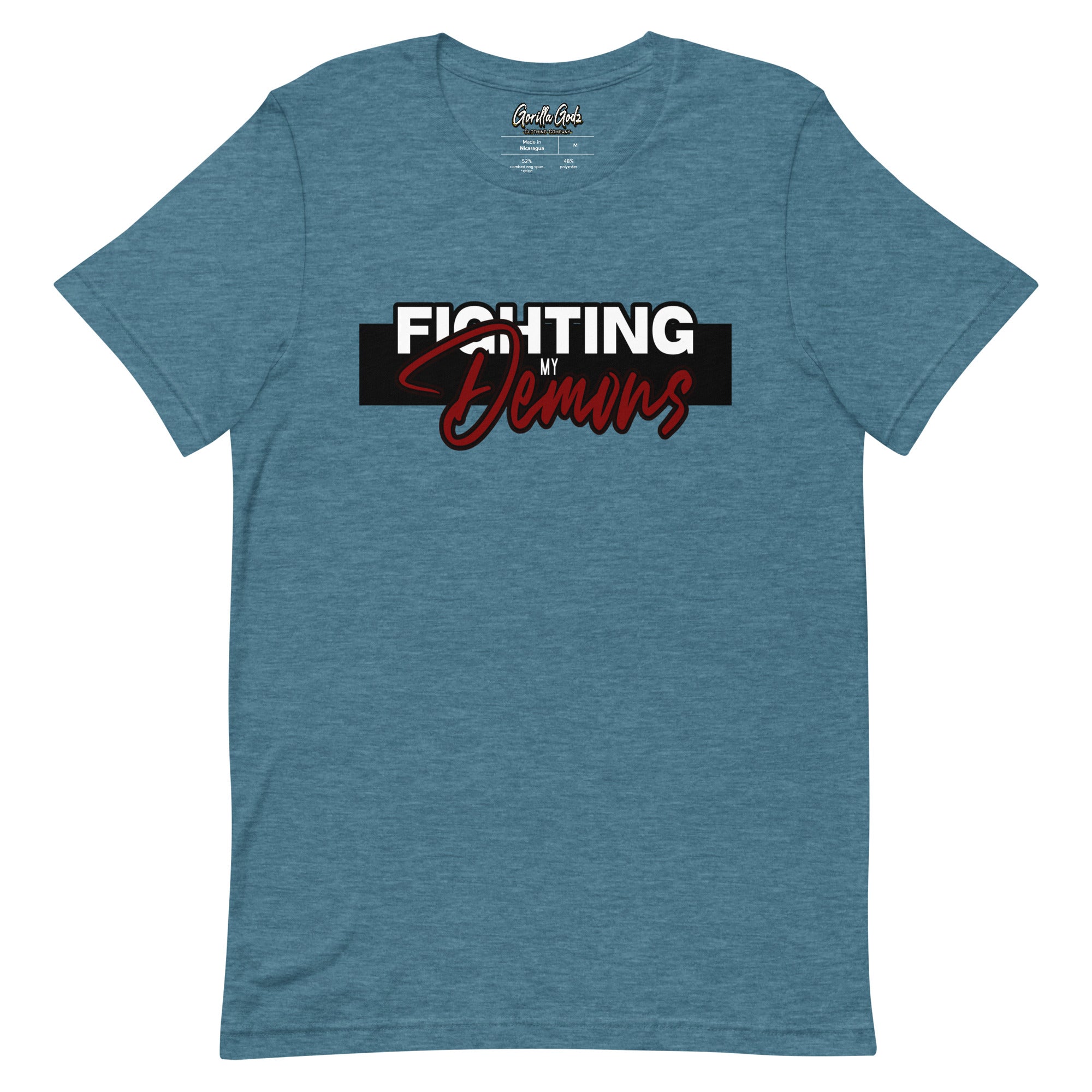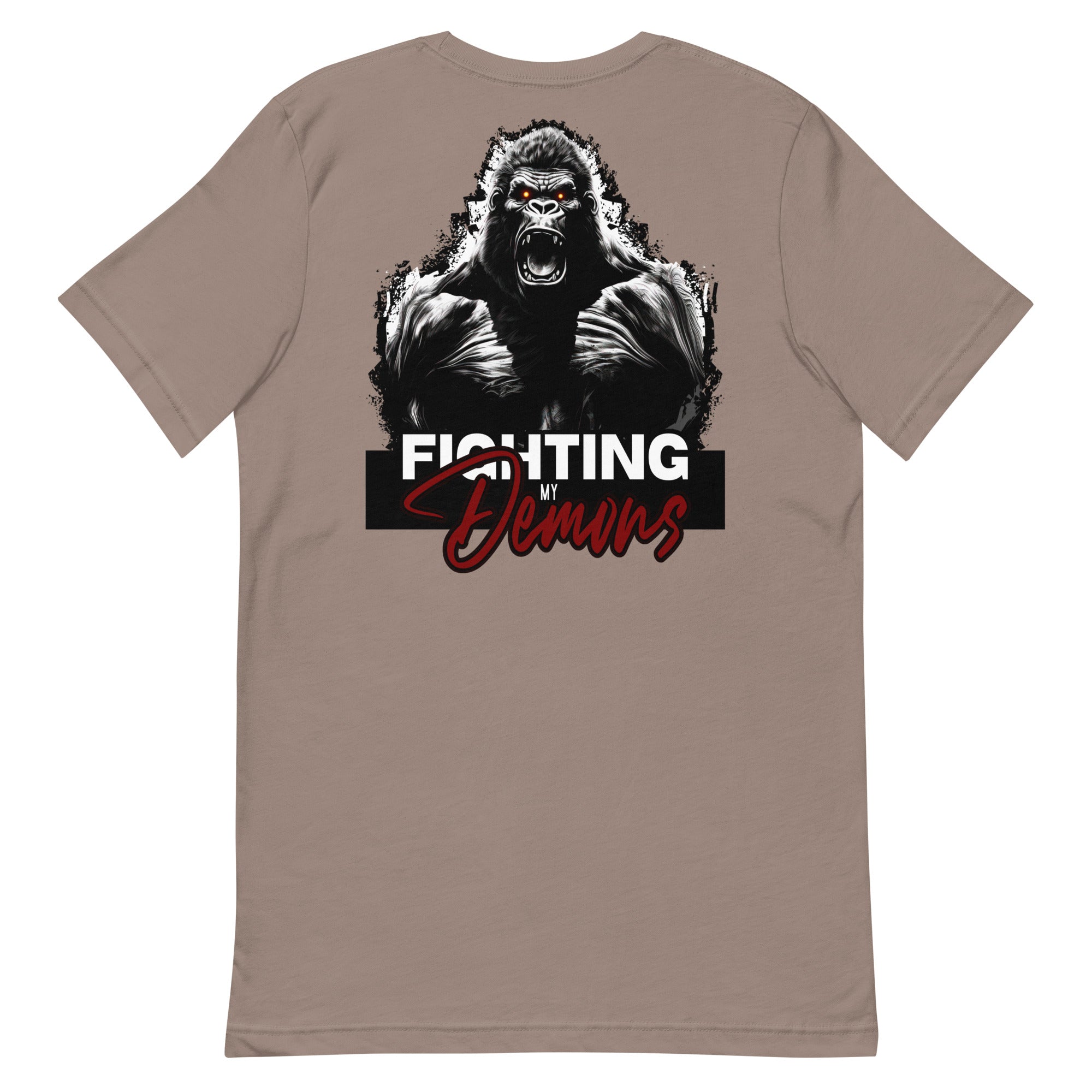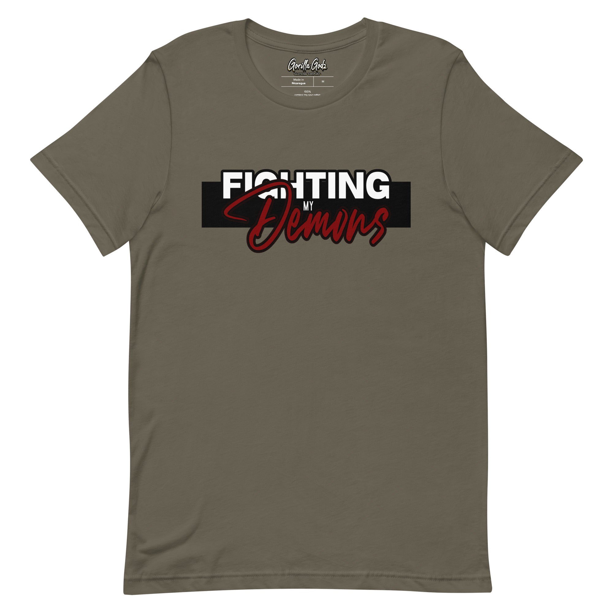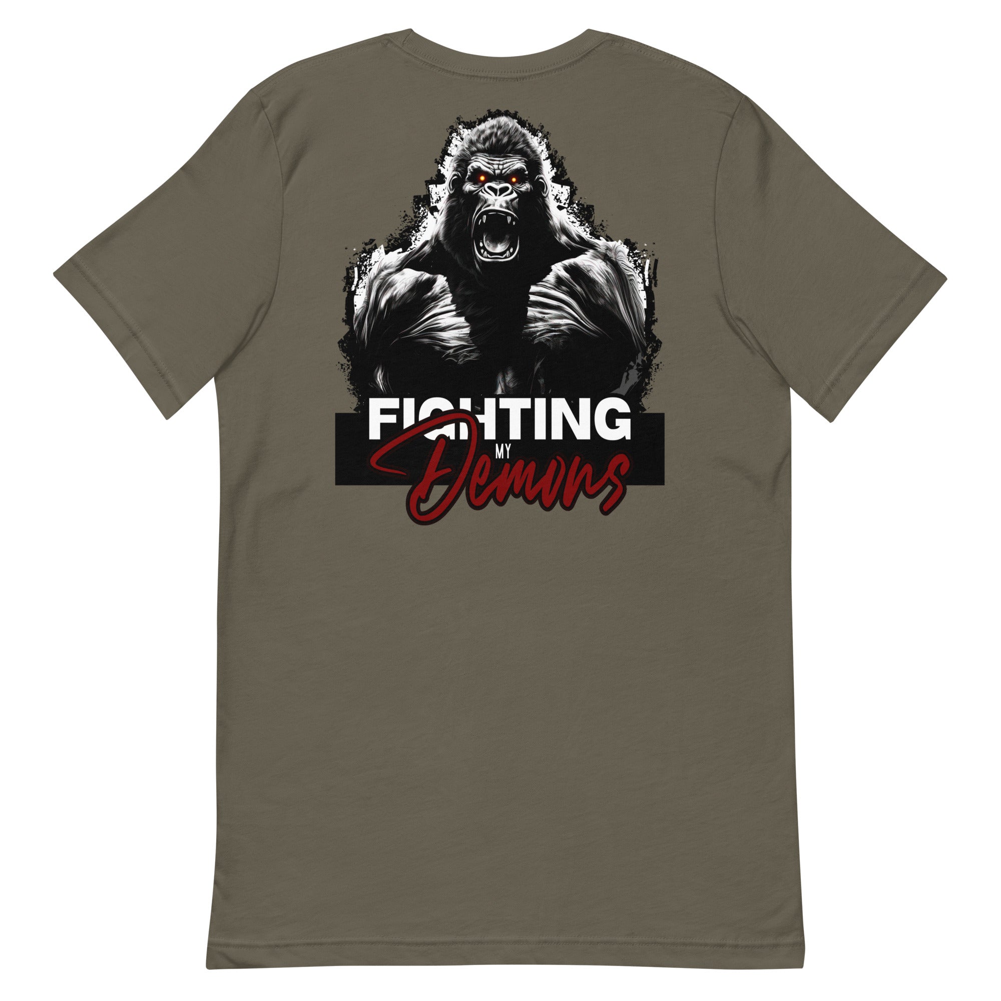 Introducing our Gorilla Godz T-shirt, a symbol of resilience and inner strength. This shirt is a declaration of victory over the battles within. Crafted with utmost care, it combines comfort with style. Its bold design reflects the courage it takes to face and conquer one's demons. Wear it proudly, showing the world that you're a fighter.