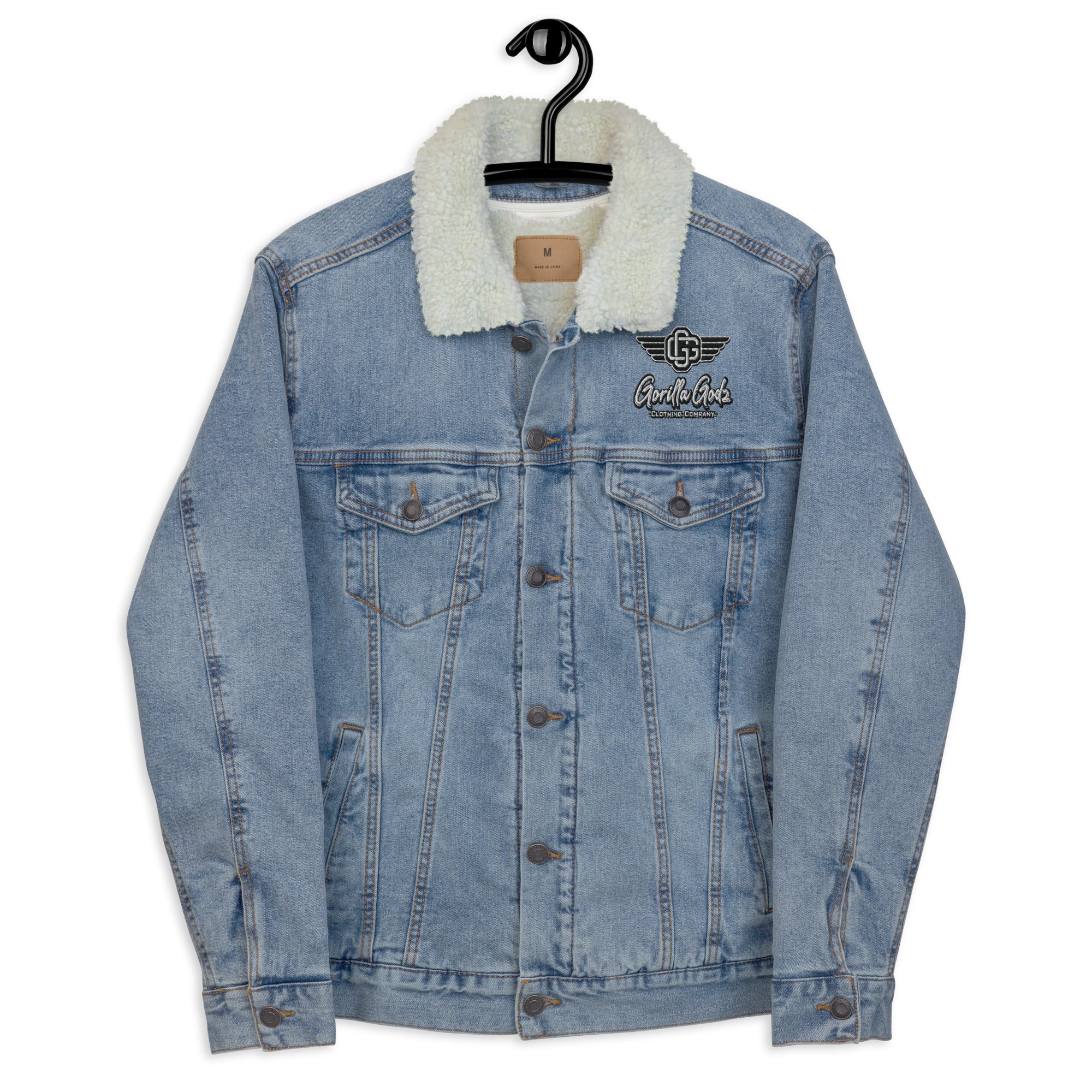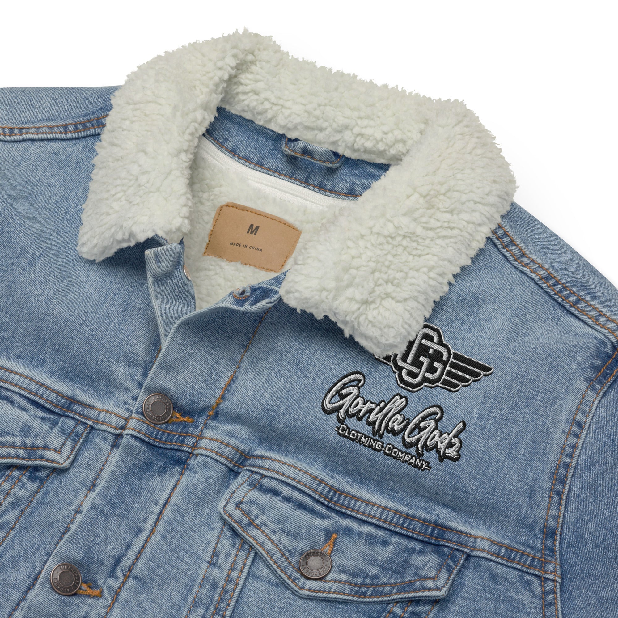 Elevate your outerwear game with the Denim Sherpa Jacket by Gorilla Godz. Crafted for rugged elegance, this timeless piece combines classic denim with cozy sherpa lining, offering both style and warmth. Unleash your inner explorer while making a statement with uncompromising quality and unmatched style from Gorilla Godz.