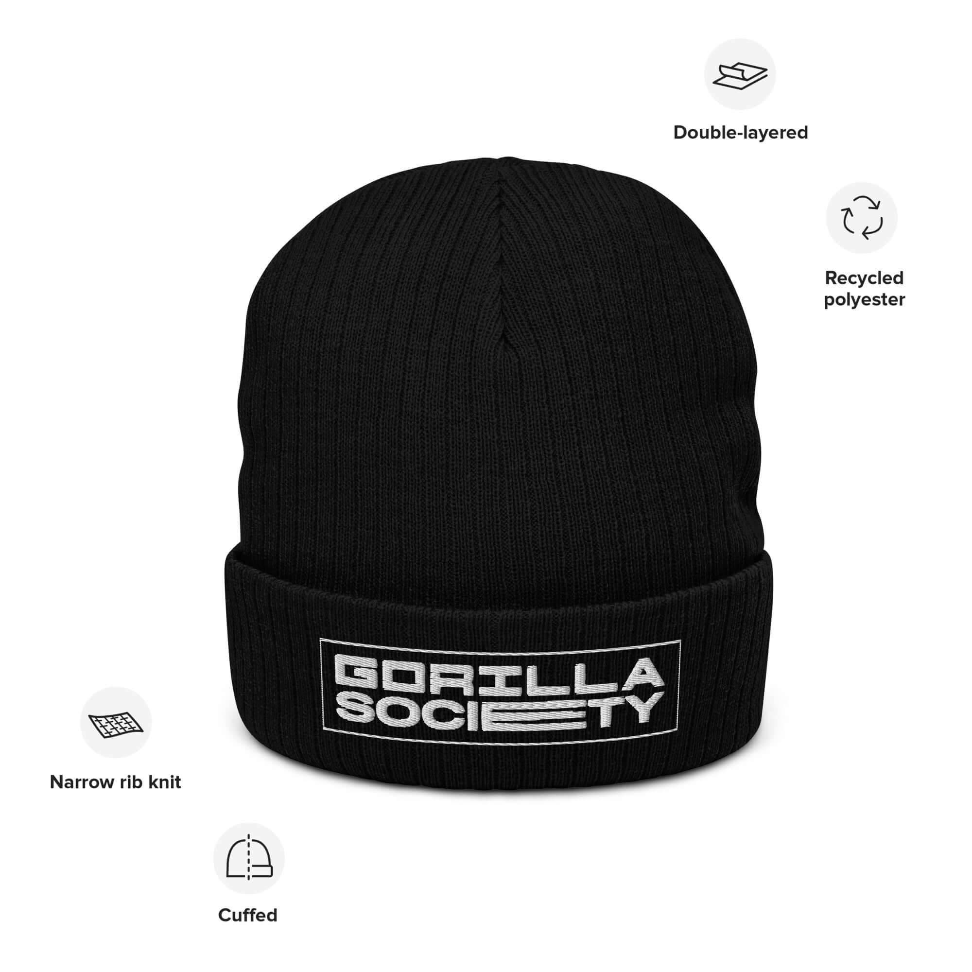 The Gorilla Godz "Gorilla Society" Beanie is for those who embrace strength, unity, and loyalty. Crafted for the ones who know the power of community and standing together, this beanie is a symbol of resilience and belonging. Made from a sustainable blend of 50% recycled polyester and 50% acrylic, it’s as strong and enduring as the Gorilla Society itself. With its double-layer knit and 8.27" (21 cm) cuffed design, this beanie provides comfort and style, uniting purpose and warmth. Wear it as a badge of honor, showing that you’re part of a society that values strength and loyalty.